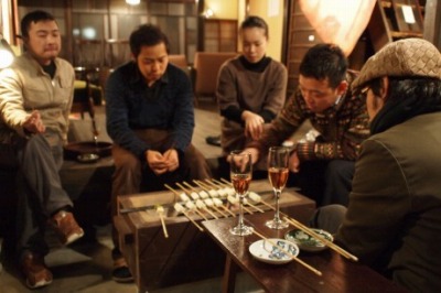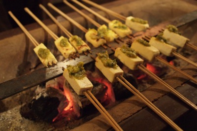 田楽を焼きながら…待ちながら…ほっぺたを火に照らしながら…