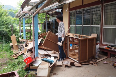 とにかく大量の使わないものを分別しながら出し、薪に出来るものは解体して燃やし(ナカム担当)