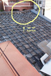 しかも棟瓦のあたりはなぜか陥没・・・。