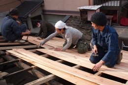 TD親方の指示のもと、テキパキと新しい垂木と野地板が据えつけられていきます。