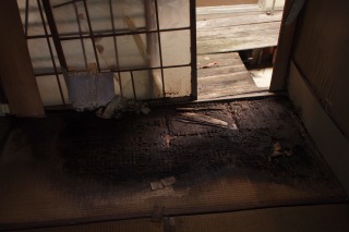 雨が漏って畳が土に還りかけている・・・。うーむ・・・。